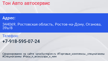 Тон Авто, автосервис по адресу 344069, Ростовская область, Ростов-на-Дону, Оганова, 39а/8 в дальнейшем Организация, размещена в следующих категориях: