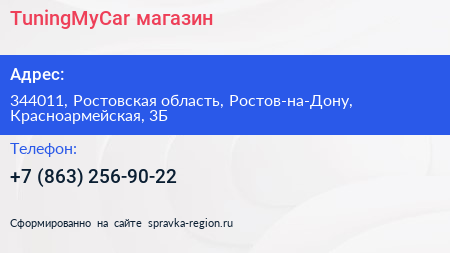 TuningMyCar, магазин по адресу 344011, Ростовская область, Ростов-на-Дону, Красноармейская, 3Б в дальнейшем Организация, размещена в следующих категориях: