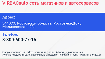 VIRBACauto, сеть магазинов и автосервисов по адресу 344090, Ростовская область, Ростов-на-Дону, Малиновского, 23г в дальнейшем Организация, размещена в следующих категориях: