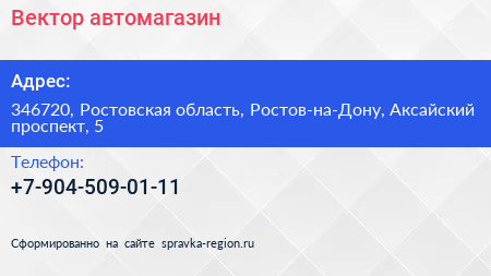 Вектор, автомагазин по адресу 346720, Ростовская область, Ростов-на-Дону, Аксайский проспект, 5 в дальнейшем Организация, размещена в следующих категориях: