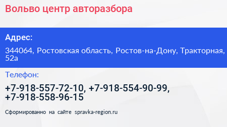 Вольво, центр авторазбора по адресу 344064, Ростовская область, Ростов-на-Дону, Тракторная, 52а в дальнейшем Организация, размещена в следующих категориях: