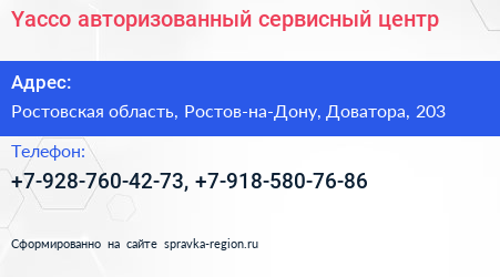 Yacco, авторизованный сервисный центр по адресу Ростовская область, Ростов-на-Дону, Доватора, 203 в дальнейшем Организация, размещена в следующих категориях: