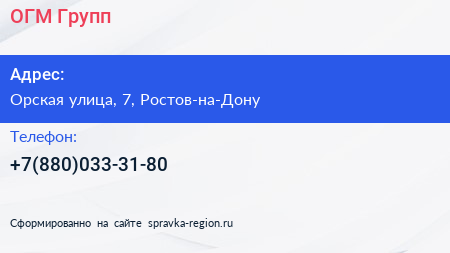 ОГМ-Групп по адресу Орская улица, 7, Ростов-на-Дону в дальнейшем Организация, размещена в следующих категориях: