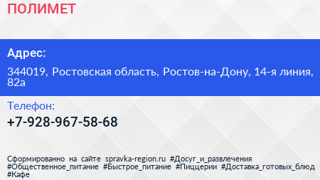 ПОЛИМЕТ по адресу 344019, Ростовская область, Ростов-на-Дону, 14-я линия, 82а в дальнейшем Организация, размещена в следующих категориях: