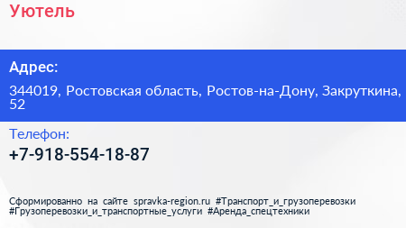 Уютель по адресу 344019, Ростовская область, Ростов-на-Дону, Закруткина, 52 в дальнейшем Организация, размещена в следующих категориях: