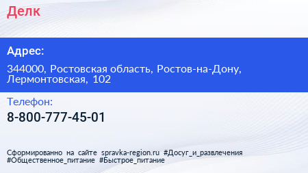 Делк по адресу 344000, Ростовская область, Ростов-на-Дону, Лермонтовская, 102 в дальнейшем Организация, размещена в следующих категориях: