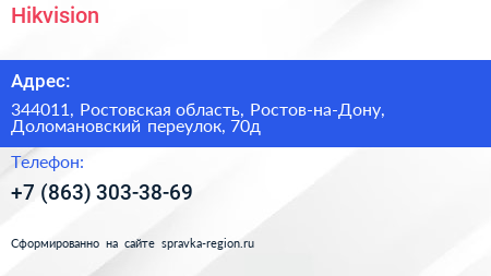 Hikvision по адресу 344011, Ростовская область, Ростов-на-Дону, Доломановский переулок, 70д в дальнейшем Организация, размещена в следующих категориях: