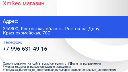 XmSec, магазин по адресу 346800, Ростовская область, Ростов-на-Дону, Красноармейская, 78Б в дальнейшем Организация, размещена в следующих категориях: