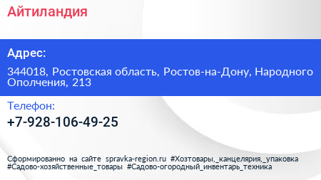 Айтиландия по адресу 344018, Ростовская область, Ростов-на-Дону, Народного Ополчения, 213 в дальнейшем Организация, размещена в следующих категориях: