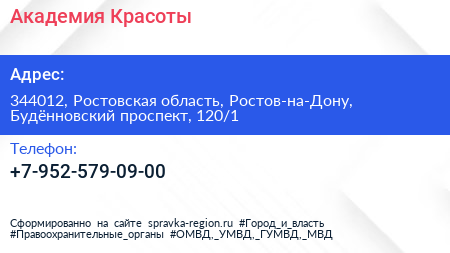 Академия Красоты по адресу 344012, Ростовская область, Ростов-на-Дону, Будённовский проспект, 120/1 в дальнейшем Организация, размещена в следующих категориях: