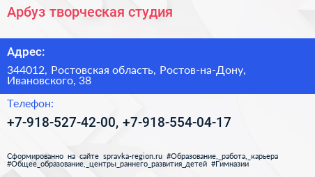 Арбуз, творческая студия по адресу 344012, Ростовская область, Ростов-на-Дону, Ивановского, 38 в дальнейшем Организация, размещена в следующих категориях: