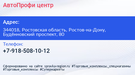 АвтоПрофи, центр по адресу 344018, Ростовская область, Ростов-на-Дону, Будённовский проспект, 80 в дальнейшем Организация, размещена в следующих категориях:
