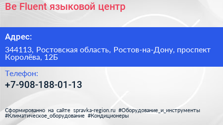 Be Fluent, языковой центр по адресу 344113, Ростовская область, Ростов-на-Дону, проспект Королёва, 12Б в дальнейшем Организация, размещена в следующих категориях: