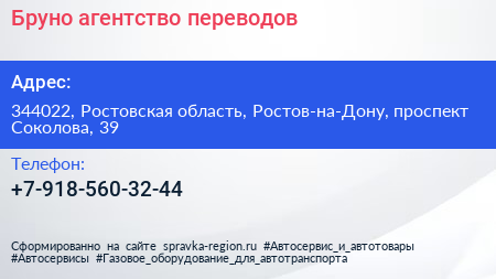 Бруно, агентство переводов по адресу 344022, Ростовская область, Ростов-на-Дону, проспект Соколова, 39 в дальнейшем Организация, размещена в следующих категориях: