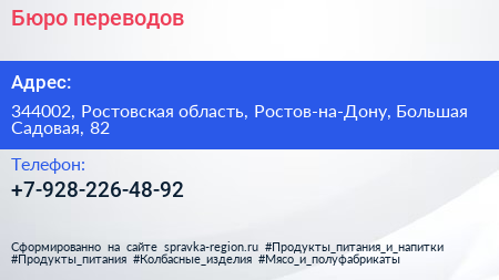 Бюро переводов по адресу 344002, Ростовская область, Ростов-на-Дону, Большая Садовая, 82 в дальнейшем Организация, размещена в следующих категориях: