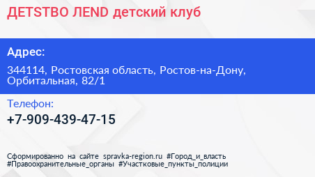ДЕТSТВО ЛЕND, детский клуб по адресу 344114, Ростовская область, Ростов-на-Дону, Орбитальная, 82/1 в дальнейшем Организация, размещена в следующих категориях:
