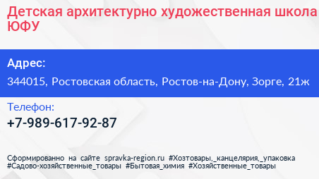 Детская архитектурно-художественная школа, ЮФУ по адресу 344015, Ростовская область, Ростов-на-Дону, Зорге, 21ж в дальнейшем Организация, размещена в следующих категориях: