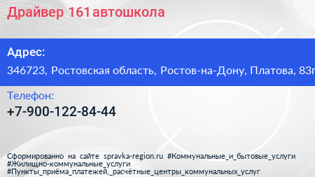 Драйвер 161, автошкола по адресу 346723, Ростовская область, Ростов-на-Дону, Платова, 83г в дальнейшем Организация, размещена в следующих категориях: