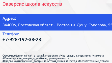 Экзерсис, школа искусств по адресу 344006, Ростовская область, Ростов-на-Дону, Суворова, 55 в дальнейшем Организация, размещена в следующих категориях: