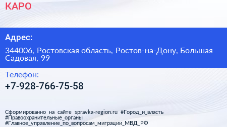 КАРО по адресу 344006, Ростовская область, Ростов-на-Дону, Большая Садовая, 99 в дальнейшем Организация, размещена в следующих категориях: