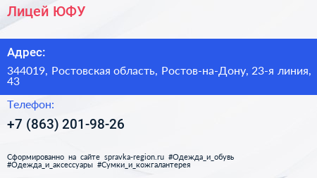 Лицей, ЮФУ по адресу 344019, Ростовская область, Ростов-на-Дону, 23-я линия, 43 в дальнейшем Организация, размещена в следующих категориях:
