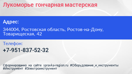 Для связи с организацией воспользуйтесь номером телефона: +7-951-837-52-32. Ежедневно с 09:00 до 20:00, вы можете обратиться в эту организацию.