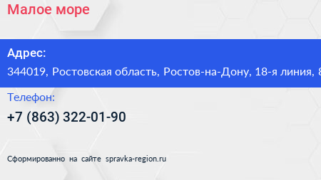 Малое море по адресу 344019, Ростовская область, Ростов-на-Дону, 18-я линия, 8 в дальнейшем Организация, размещена в следующих категориях: