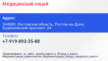 Медицинский лицей по адресу 344000, Ростовская область, Ростов-на-Дону, Будённовский проспект, 64 в дальнейшем Организация, размещена в следующих категориях: