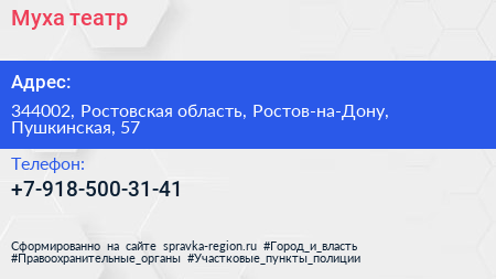 Муха, театр по адресу 344002, Ростовская область, Ростов-на-Дону, Пушкинская, 57 в дальнейшем Организация, размещена в следующих категориях: