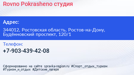 Rovno Pokrasheno, студия по адресу 344012, Ростовская область, Ростов-на-Дону, Будённовский проспект, 120/1 в дальнейшем Организация, размещена в следующих категориях: