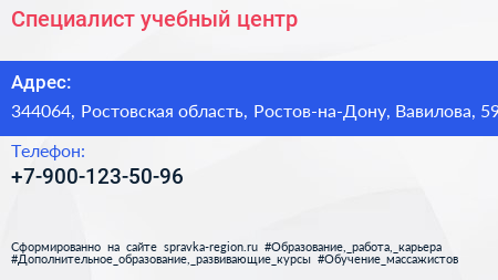 Специалист, учебный центр по адресу 344064, Ростовская область, Ростов-на-Дону, Вавилова, 59 в дальнейшем Организация, размещена в следующих категориях: