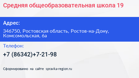 Средняя общеобразовательная школа №19 по адресу 346750, Ростовская область, Ростов-на-Дону, Комсомольская, 6а в дальнейшем Организация, размещена в следующих категориях:
