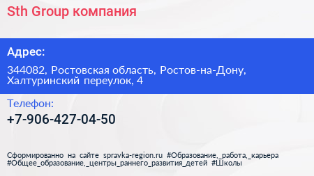 Sth-Group, компания по адресу 344082, Ростовская область, Ростов-на-Дону, Халтуринский переулок, 4 в дальнейшем Организация, размещена в следующих категориях: