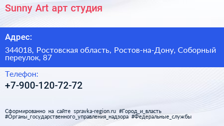 Sunny Art, арт-студия по адресу 344018, Ростовская область, Ростов-на-Дону, Соборный переулок, 87 в дальнейшем Организация, размещена в следующих категориях: