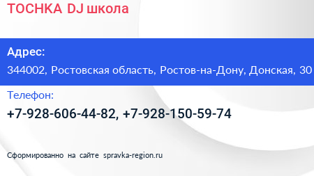 TOCHKA.DJ, школа по адресу 344002, Ростовская область, Ростов-на-Дону, Донская, 30 в дальнейшем Организация, размещена в следующих категориях: