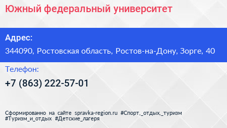 Южный федеральный университет по адресу 344090, Ростовская область, Ростов-на-Дону, Зорге, 40 в дальнейшем Организация, размещена в следующих категориях: