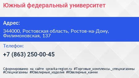 Южный федеральный университет по адресу 344000, Ростовская область, Ростов-на-Дону, Филимоновская, 137 в дальнейшем Организация, размещена в следующих категориях: