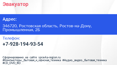 Эвакуатор по адресу 346720, Ростовская область, Ростов-на-Дону, Промышленная, 2Б в дальнейшем Организация, размещена в следующих категориях: