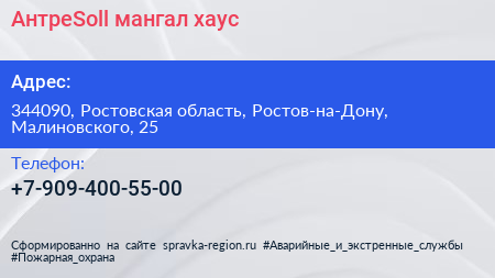 АнтреSoll, мангал-хаус по адресу 344090, Ростовская область, Ростов-на-Дону, Малиновского, 25 в дальнейшем Организация, размещена в следующих категориях: