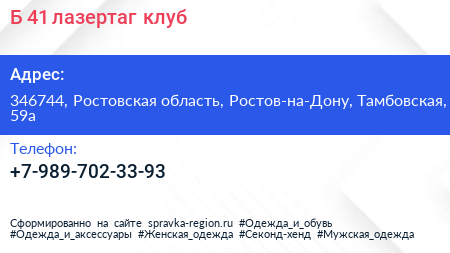Б-41, лазертаг-клуб по адресу 346744, Ростовская область, Ростов-на-Дону, Тамбовская, 59а в дальнейшем Организация, размещена в следующих категориях: