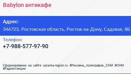 Babylon, антикафе по адресу 346723, Ростовская область, Ростов-на-Дону, Садовая, 8Б в дальнейшем Организация, размещена в следующих категориях: