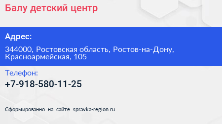 Балу, детский центр по адресу 344000, Ростовская область, Ростов-на-Дону, Красноармейская, 105 в дальнейшем Организация, размещена в следующих категориях:
