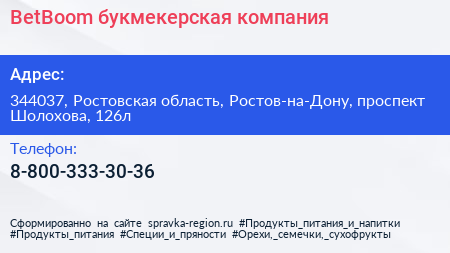 BetBoom, букмекерская компания по адресу 344037, Ростовская область, Ростов-на-Дону, проспект Шолохова, 126л в дальнейшем Организация, размещена в следующих категориях:
