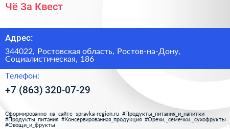Чё За Квест по адресу 344022, Ростовская область, Ростов-на-Дону, Социалистическая, 186 в дальнейшем Организация, размещена в следующих категориях: