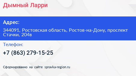 Дымный Ларри по адресу 344091, Ростовская область, Ростов-на-Дону, проспект Стачки, 204в в дальнейшем Организация, размещена в следующих категориях: