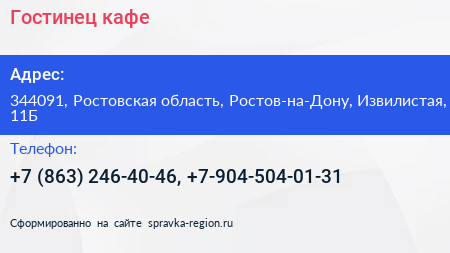 Гостинец, кафе по адресу 344091, Ростовская область, Ростов-на-Дону, Извилистая, 11Б в дальнейшем Организация, размещена в следующих категориях: