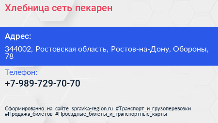 Хлебница, сеть пекарен по адресу 344002, Ростовская область, Ростов-на-Дону, Обороны, 78 в дальнейшем Организация, размещена в следующих категориях: