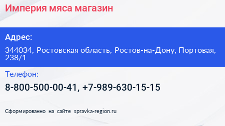 Империя мяса, магазин по адресу 344034, Ростовская область, Ростов-на-Дону, Портовая, 238/1 в дальнейшем Организация, размещена в следующих категориях: