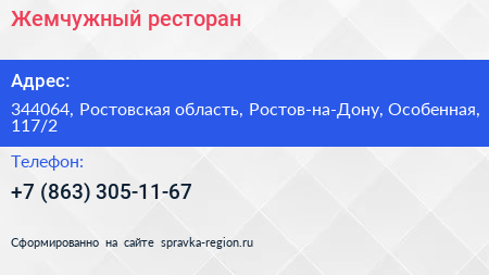 Жемчужный, ресторан по адресу 344064, Ростовская область, Ростов-на-Дону, Особенная, 117/2 в дальнейшем Организация, размещена в следующих категориях: