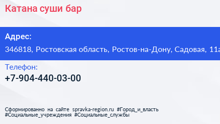 Катана, суши-бар по адресу 346818, Ростовская область, Ростов-на-Дону, Садовая, 11а в дальнейшем Организация, размещена в следующих категориях: